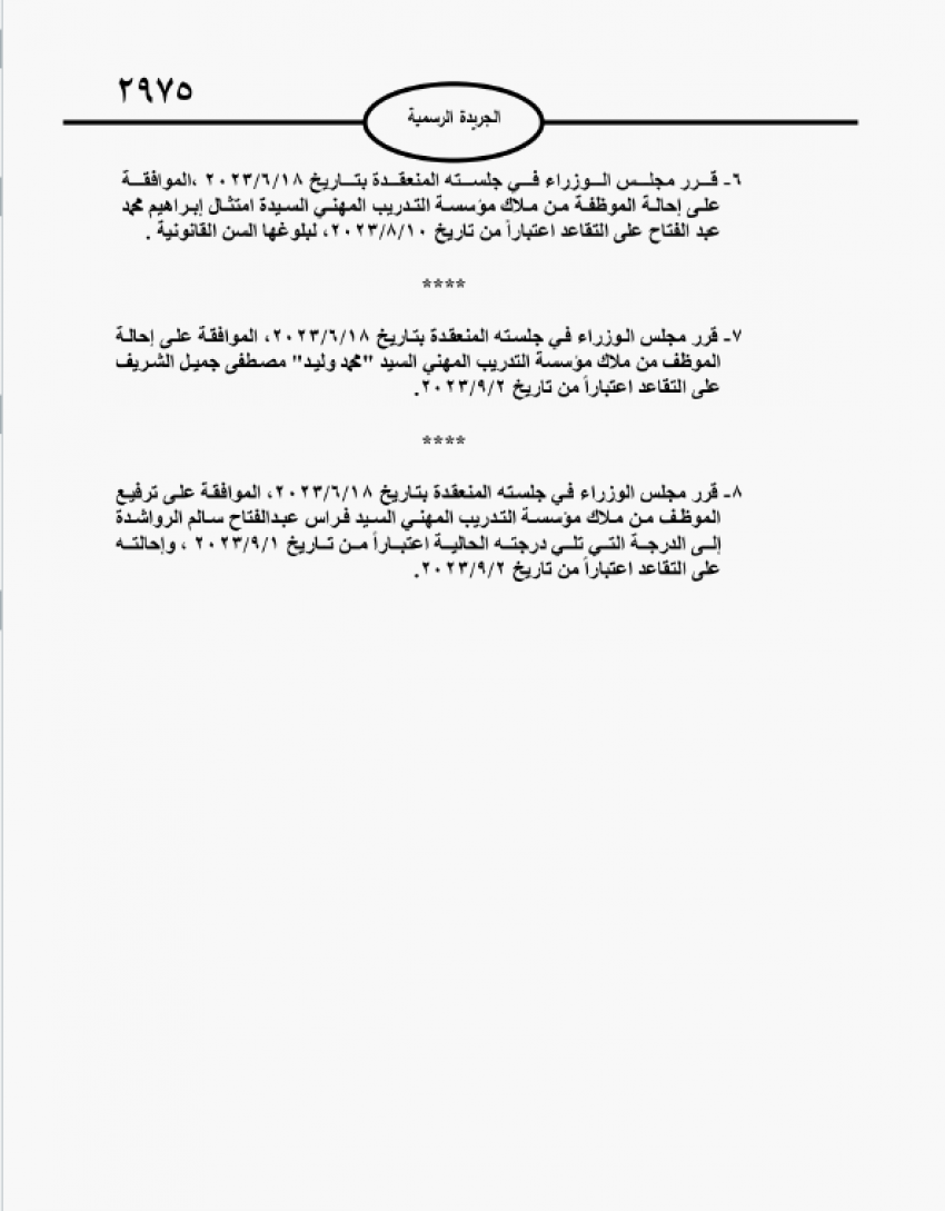 إحالات للتقاعد وإنهاء خدمات في مؤسسات ووزارات .. أسماء Last updated يوليو 2, 2023 Share وكالة الناس – صدر في عدد الجريدة الرسمية اليوم الأحد، قرارات مجلس الوزراء بإحالة موظفين حكوميين إلى التقاعد، وانهاء خدمات اخرين. وتاليا الأسماء: