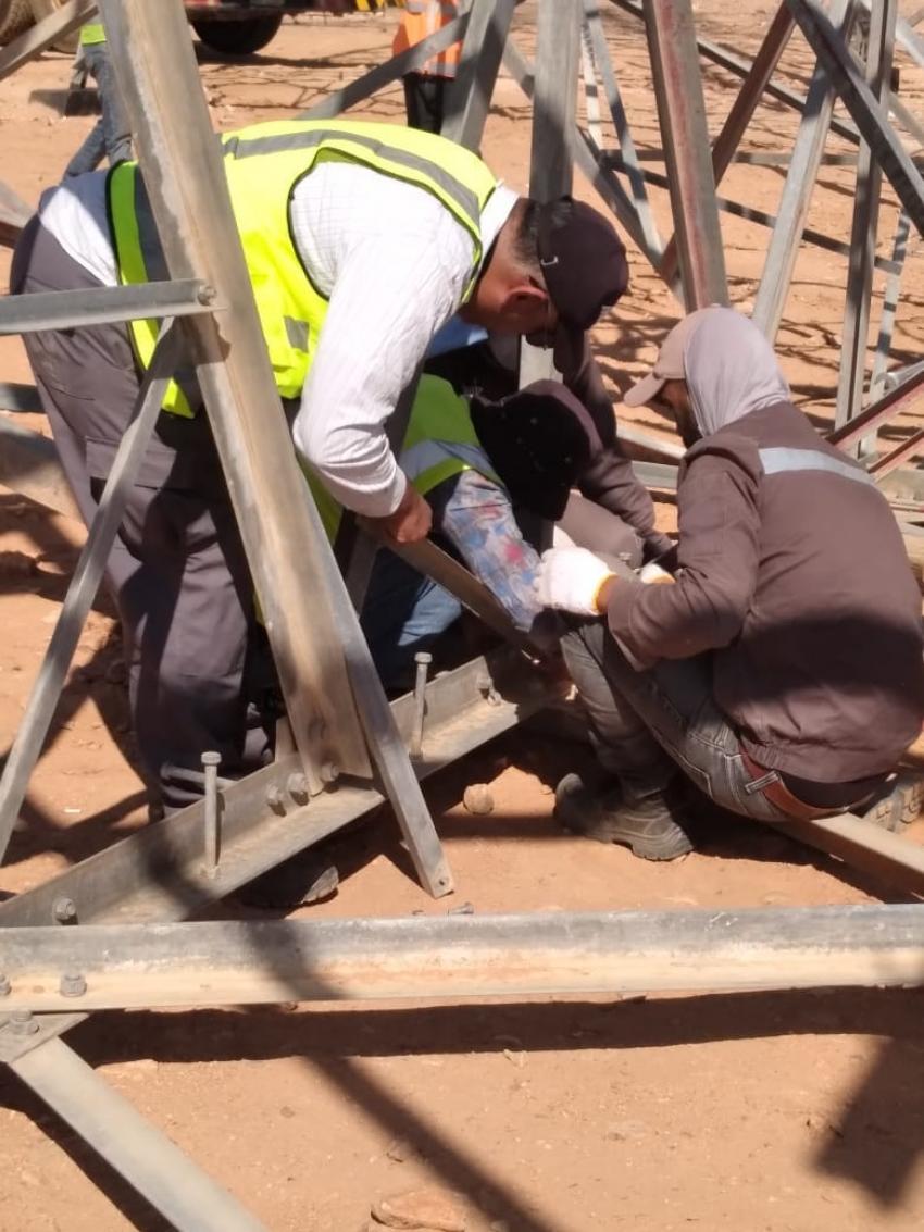 بالصور.. استمرار تركيب أبراج خط الربط الكهربائي بين الأردن والعراق
