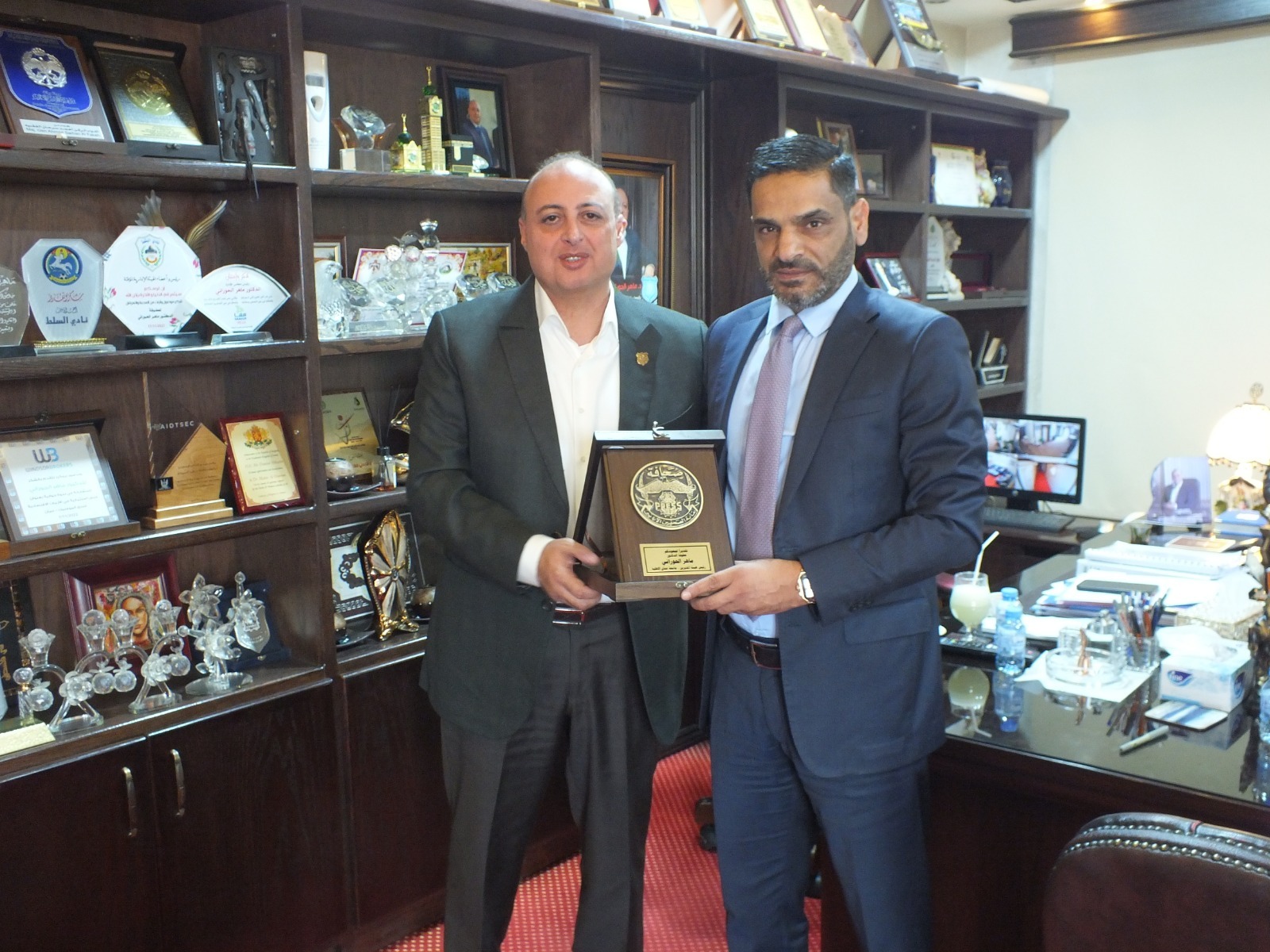 وقدم النقيب السعايدة درع النقابة التكريمي للدكتور ماهر الحوراني تعبيرا عن الشكر والامتنان لما قدمته وتقدمه الجامعة خدمة للنقابة والأسرة الصحفية.