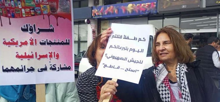 وكالة الناس – نفذت مجموعة من الناشطات وقفة أمام أحد متاجر “كارفور”، السبت، وذلك تأكيدا على استمرار مقاطعة المنتجات والعلامات التجارية والشركات التي دعمت الاحتلال الصهيوني في حربه على قطاع غزة.
