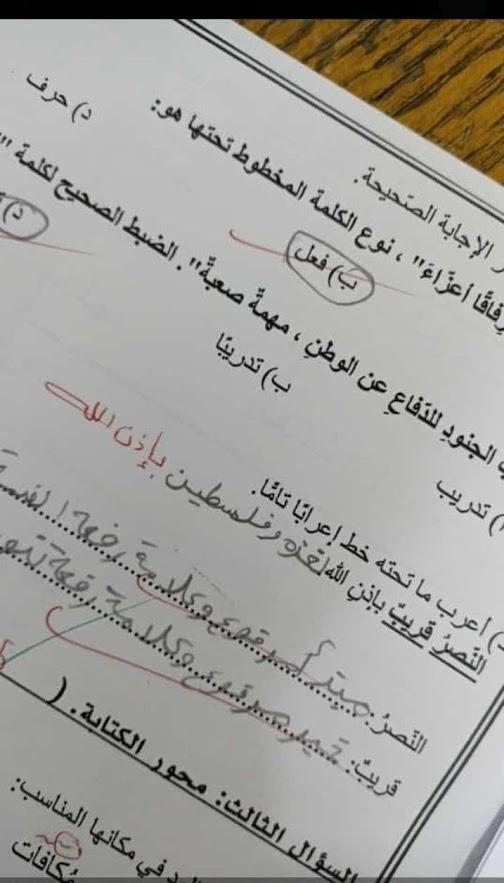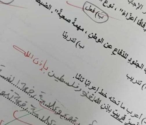 وورد سؤالا ينص على “أعرب جملة النصر قريب بإذن الله”، ليكمل الطالب الجملة لتصبح “النصر قريب لغزة وفلسطين”، الأمر الذي أثار استحسان المعلمة لترد على إجابة الطالب عند تصحيح أوراق الامتحان، “بإذن الله”.