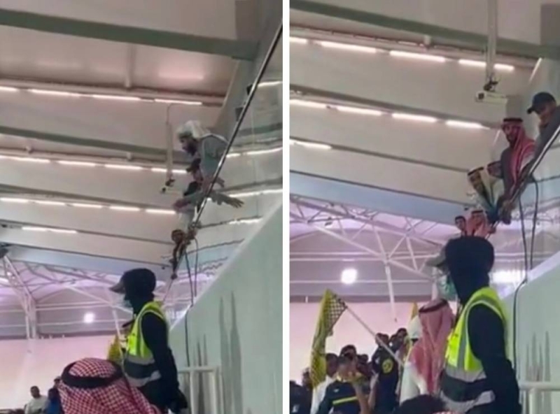 وأظهر الفيديو ناصر الكنعاني وأحد مشجعي نادي النصر وهما يتحدثان بعصبيه ، فيما يحاول آخرين من المشجعين إسكاتهما .