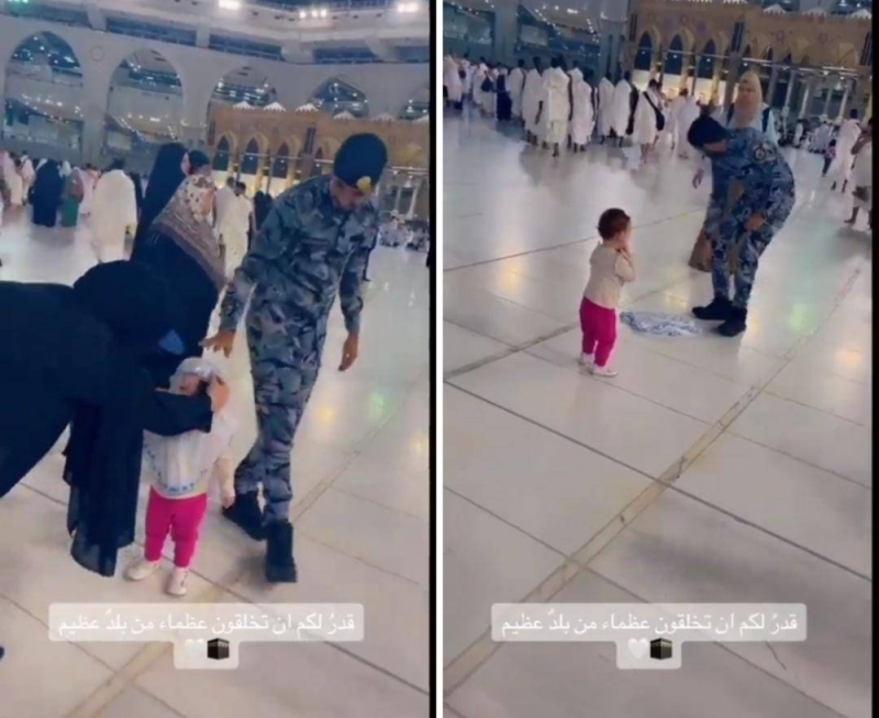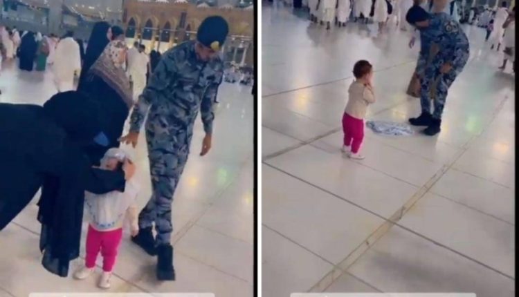 وثق مقطع فيديو متداول عبر مواقع التواصل الاجتماعي، ما قام به عسكري تجاه طفلة في الحرم المكي.