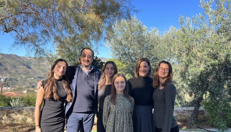 المنشور مصحوب بصورة عائلية مع الرئيس خريستودوليديس وبناتهما الأربع.