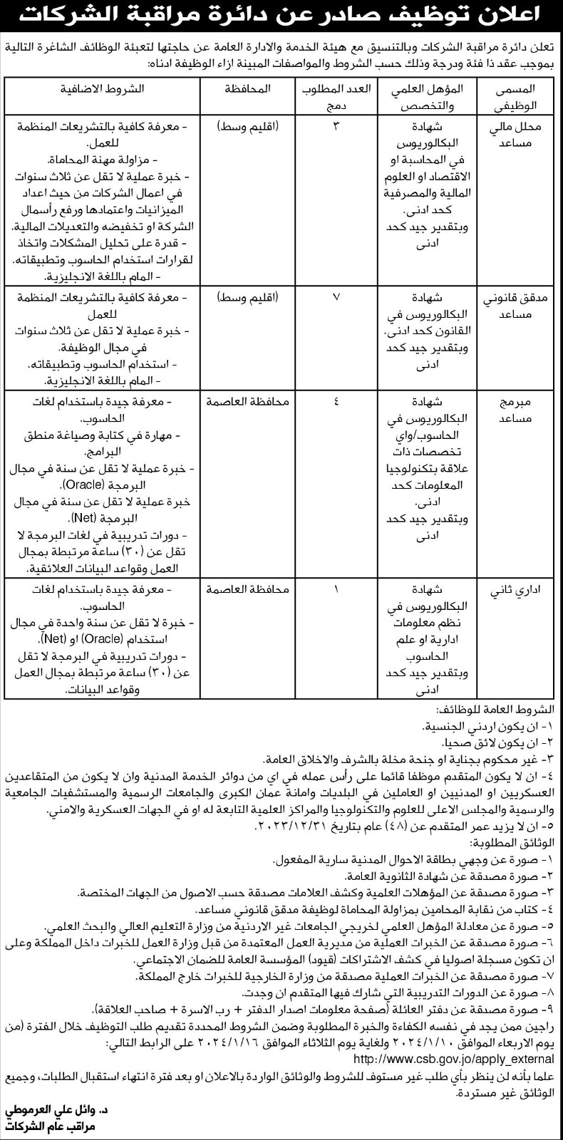 وكما أعلن عن عدد الشواغر الوظيفية .