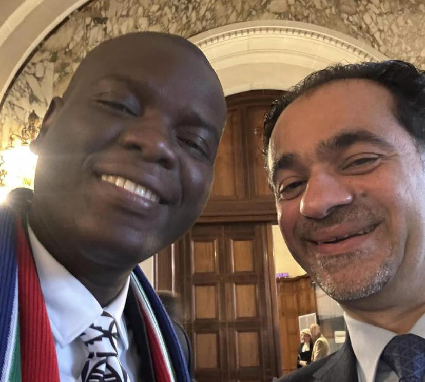 وكالة الناس –  نشر المحامي الدكتور عمر مشهور حديثة الجازي ، الخميس ، صورة له برفقة وزير عدل جنوب أفريقيا ، التقطت في محكمة العدل الدولية في لاهاي بعد انتهاء جلسة الاستماع لدعوى جنوب أفريقيا ضد كيان الاحتلال.