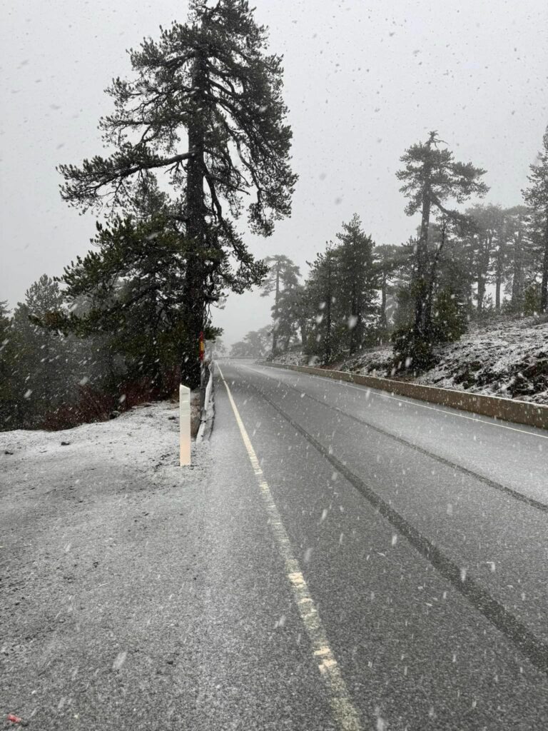 وكما ورد في صفحة “عشاق الطقس في قبرص” على الفيسبوك، فإن الصور تصور تساقط كميات كبيرة من الثلوج في المنطقة.