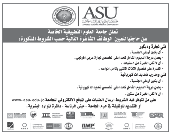 وظائف شاغرة لدى جامعة العلوم التطبيقية الخاصة