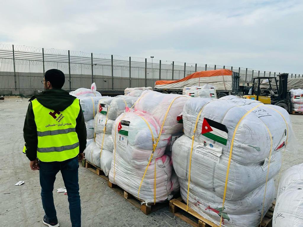 وصول قافلة مساعدات أردنية جديدة الى غزة ( صور ) On يناير 22, 2024 Share وكالة الناس -أعلنت الهيئة الخيرية الهاشمية، وصول قافلة مساعدات أردنية جديدة لأهلنا في غزة عبر معبر كرم أبو سالم صباح اليوم. وقالت الهيئة الإثنين، إن القافلة تحمل على متنها مساعدات اغاثية ومعونات شتوية، وسيتم توزيعها على مستحقيها بالتعاون مع المنظمات الشريكة بالقطاع.