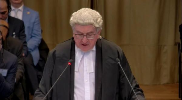وكالة الناس -تحدث اليوم الخميس امام محكمة العدل الدولية الخبير الاممي، المحامي البريطاني مايكل وود ضمن الفريق القانوني الاردني للمرافعة الشفهية امام المحكمة.