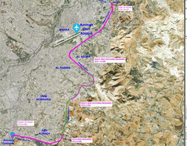 ويبلغ طول المشروع نحو 18 كم، تبدأ من منطقة جمرك عمان باتجاه منطقة ابو علندا والرقيم وجسر مرسيدس ومنها الى شارع الجيش مرورا بمنطقة الصالحية ونادي السباق وماركا وصولا الى تقاطع كلية الهندسة التكنولوجية “البوليتكنك”.