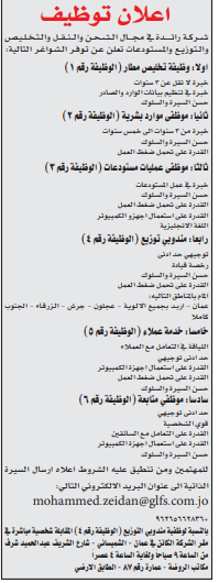 وظائف شاغرة لدى شركة تخليص ونقل وشحن