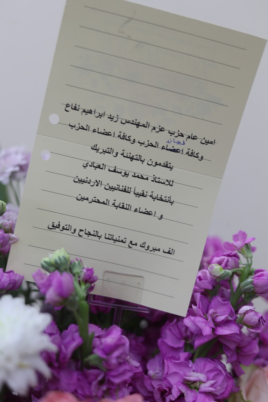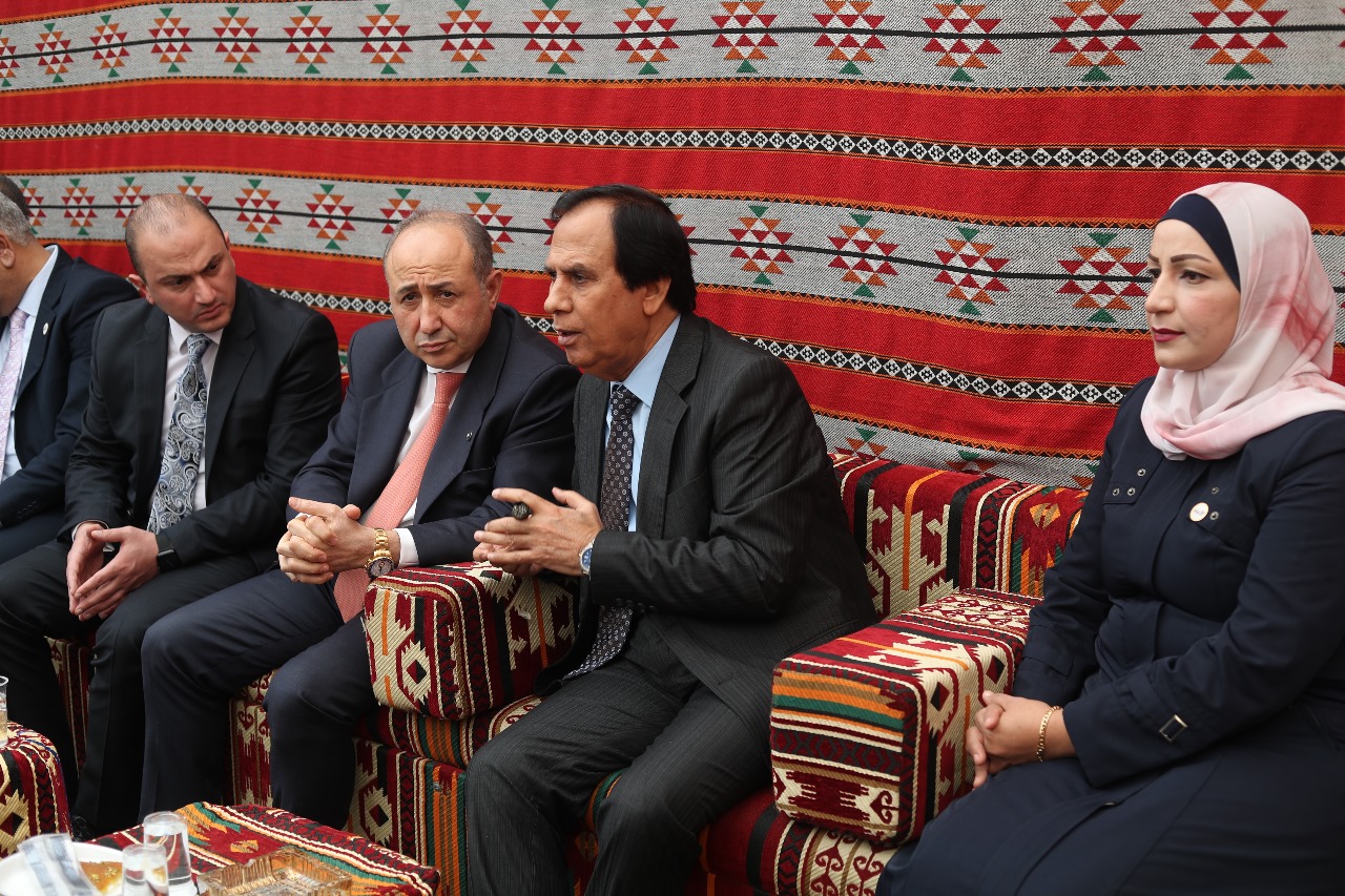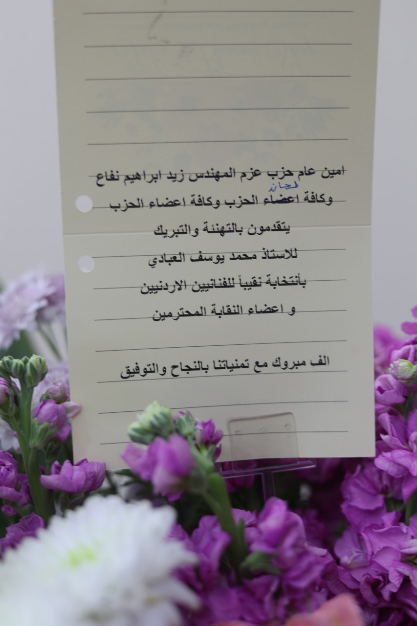 بدورة شكر نقيب الفنانيين محمد يوسف العبادي باسمه واسم نقابة الفنانيين امين عام حزب عزم المهندس زيد نفاعً واعضاء الحزب على هذه الزيارة ، مشددا