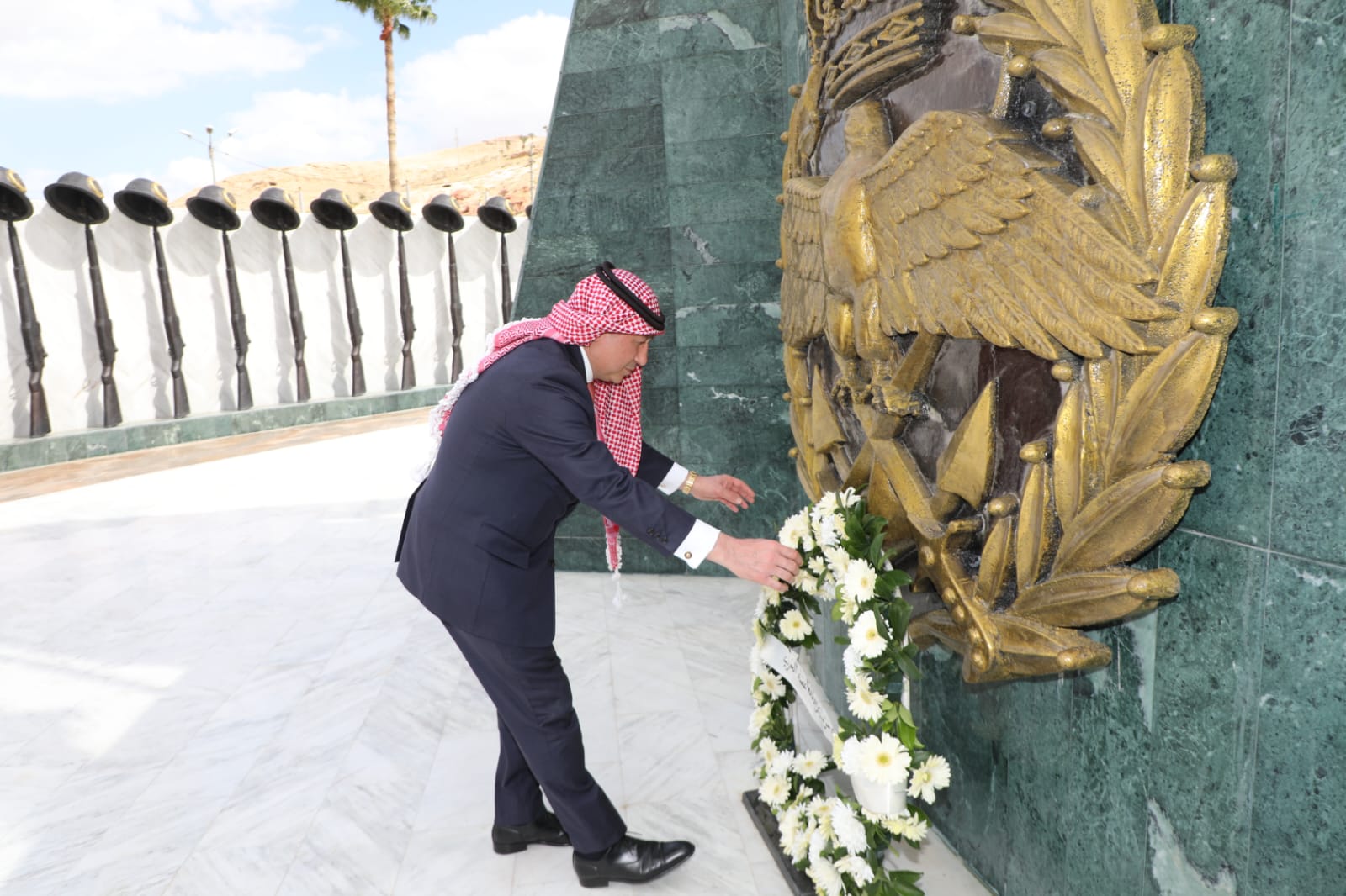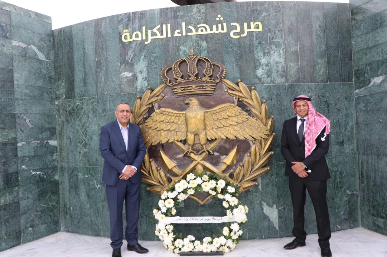 وكالة الناس – قام أمين عام حزب عزم المهندس زيد نفاع وكبار رجالات الجيش المتقاعدين المنتسبين في الحزب بزيارة إلى نصب الجندي المجهول في منطقة الكرامة، بمناسبة الذكرى السنوية السادسة والخمسين لمعركة الكرامة الخالدة.