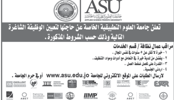 وظيفة شاغرة لدى جامعة العلوم التطبيقية الخاصة