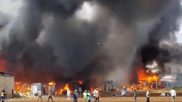 حريق ضخم في مخيم للاجئين السوريين بلبنان (فيديو)