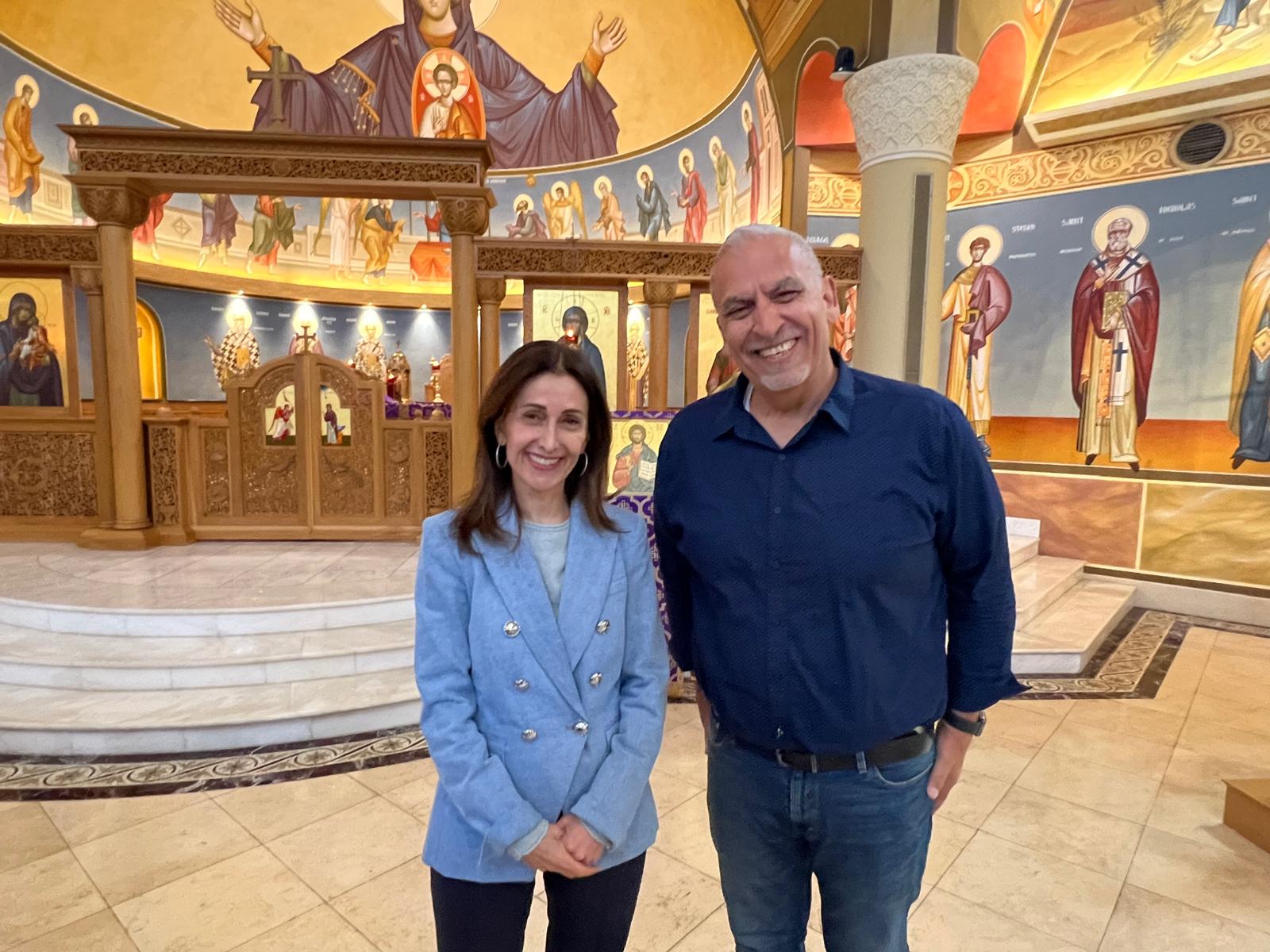 وكالة الناس -التقت السفيرة الأردنية في واشنطن دينا قعوار في ولاية إنديانا يوم الخميس 26/4/2024 والتقت الأب القس أنتوني يازجي وأعضاء الجالية الأردنية في ولاية إنديانا في كنيسة القديس جاورجيوس الأرثوذكسية وناقشوا خلالها بإنجازاتهم ومساهماتهم العديدة في خدمة الجالية الأردنية ..