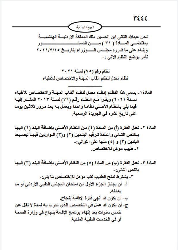 وكالة الناس -ناشد الأطباء مؤهلوا الإختصاص العاملين في وزارة الصحة قائد الوطن المفدى الملك عبدالله الثاني بن الحسين حفظه الله و رعاه و ولي عهده الميمون الأمير الحسين بن عبدالله حفظه الله و رعاه بإنصافهم بما يتعلق بالمسمى الذي صدر بإرادة ملكية سامية منذ عام ٢٠٢١ و حيث لليوم لم يطرأ أي جديد منذ ذلك التاريخ و حتى اليوم فلم يستلم أي طبيب شهادة بالمسمى و لم تصدر مزاولة مهنة به و لم تتحقق كل الإتفاقيات و التبعات المتعلقة به و التي تم الإتفاق عليها مع وزارة الصحة و وقعت عليها .ولاحظ الأطباء أيضا مماطلة في تنفيذ الإرادة الملكية السامية التي صدرت قبل ثلاث سنوات …