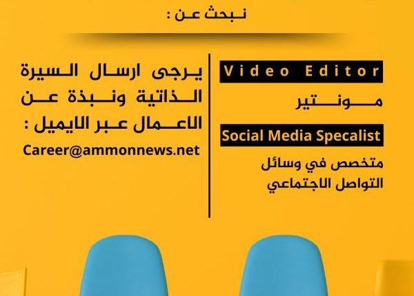 **يرجى ارسال السيرة الذاتية ونبذة عن الاعمال عبر الايميل : Career@ammonnews.net