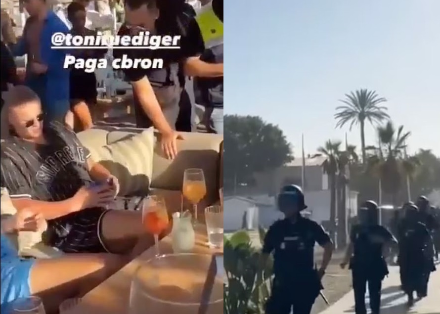 ونشرت صحيفة “ديلي ميل” البريطانية، صورة يظهر فيها هالاند أثناء تواجده على الشاطئ، وبجانبه رجال الشرطة في شاطئ كوستا المفضل لدى النجم النرويجي.