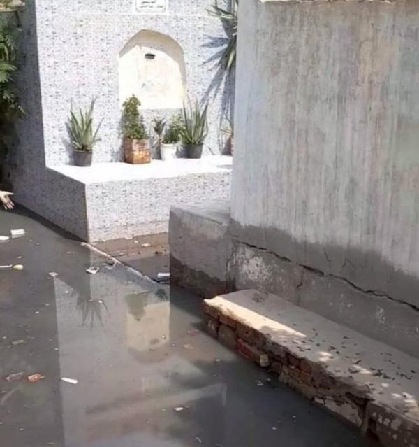 وأضاف أن السبب في ذلك يرجع إلى غلق محطة الصرف الصحي فطردت المياه ودخلت الضريح والبيوت ويتم التعامل معها بجهود ذاتية.