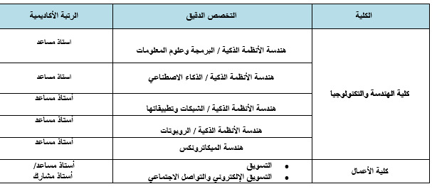 •أن يكون حاصلاً على البكالوريوس والماجستير والدكتوراه في التخصصات المطلوبة من جامعة مرموقة ومعترف بها
