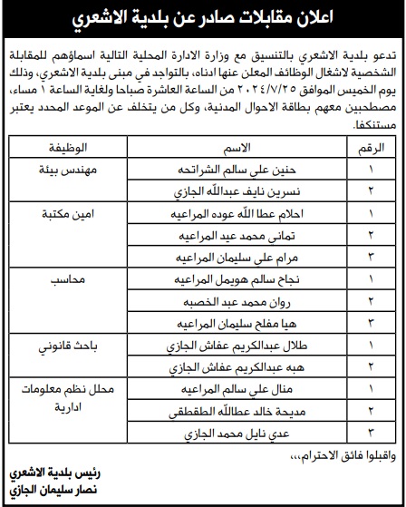 مدعوون للتعيين لإشغال وظائف (أسماء)