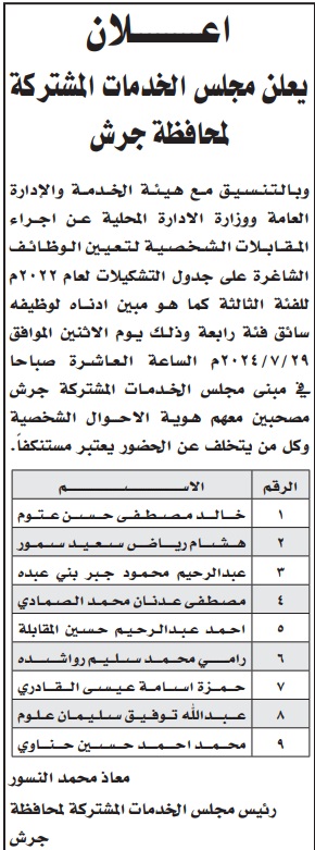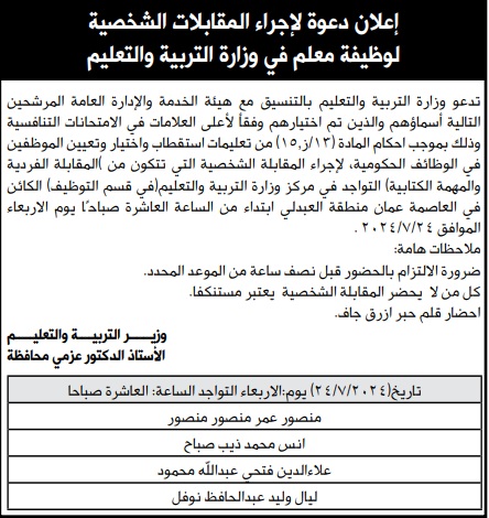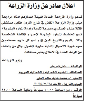 وكالة الناس –دعت عدد من الوزارات والمؤسسات الحكومية ،اليوم الثلاثاء، بالتنسيق مع ديوان الخدمة المدنية، مرشحين للتعيين لإشغال شواغر وظيفية لديها.