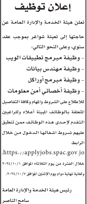 وظائف شاغرة لدى هيئة الخدمة والادارة العامة