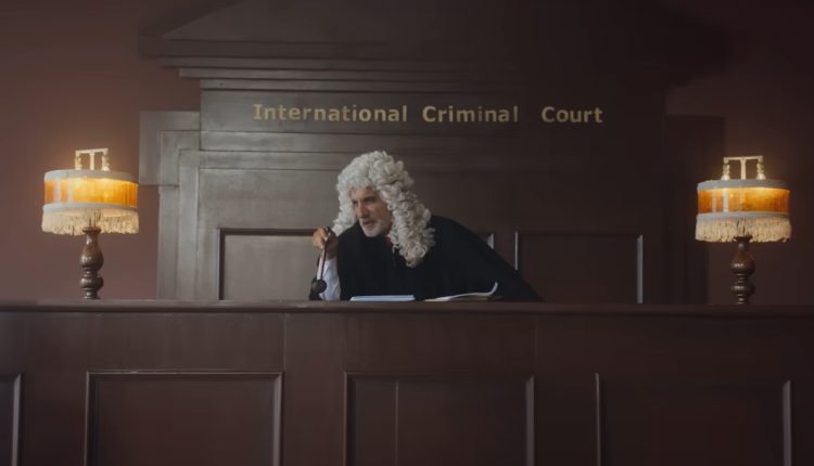 ويتوجه بالحديث للقاضي وهيئة المحلفين قائلاً: “دعونا لا نسقط ضحية لمشاعرنا وعواطفنا”، ثم يشير بيده لجوقة من الراقصات ترتدي ألوان العلم الأمريكي، وتغني: “أيمكنك أن ترى، من هو زعيم الجنائية الدولية؟.. لابد أنه التفوق الأمريكي”، ثم يشيرون لجنود يرتدون الزي العسكري الأمريكي ويؤدون التحية بدورهم.