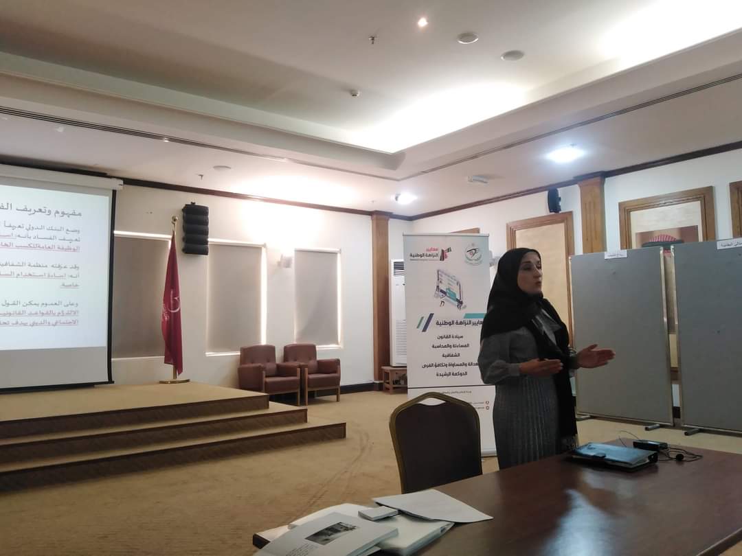 وتأتي الورشة ضمن توجه هيئة النزاهة ومكافحة الفساد وخطة عملها الميدانية في القطاع العام بهدف تعزيز الوعي للموظفين بمعايير النزاهة الوطنية وتوضيح مفهوم الفساد وأشكاله وأنواعه وأسبابه ومخاطره وطرق الحد منه أو الوقاية، علاوة تعريف الموظف بمفهوم الحاكمية الرشيدة وإنفاذ سيادة القانون وإرساء مبادئ المسؤولية والشفافية والكفاءة في الوظيفة العامة.