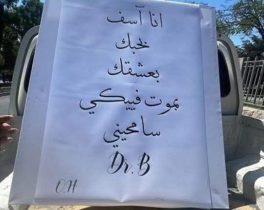 وكالة الناس –  أثارت يافطة غرامية عُلّقت على إشارة “المواصفات والمقاييس” في عمان، جدلًا واسعًا على مواقع التواصل الاجتماعي. الرسالة الموقعة بـ O.H. وموجّهة إلى Dr.B، حملت عبارات اعتذار وغرام، مما أثار الفضول والضحك لدى المارة. واختلفت الآراء حولها بين من اعتبرها خطوة رومانسية جريئة وآخرين اعتبروها استعراضًا عاطفيًا في العلن [1].