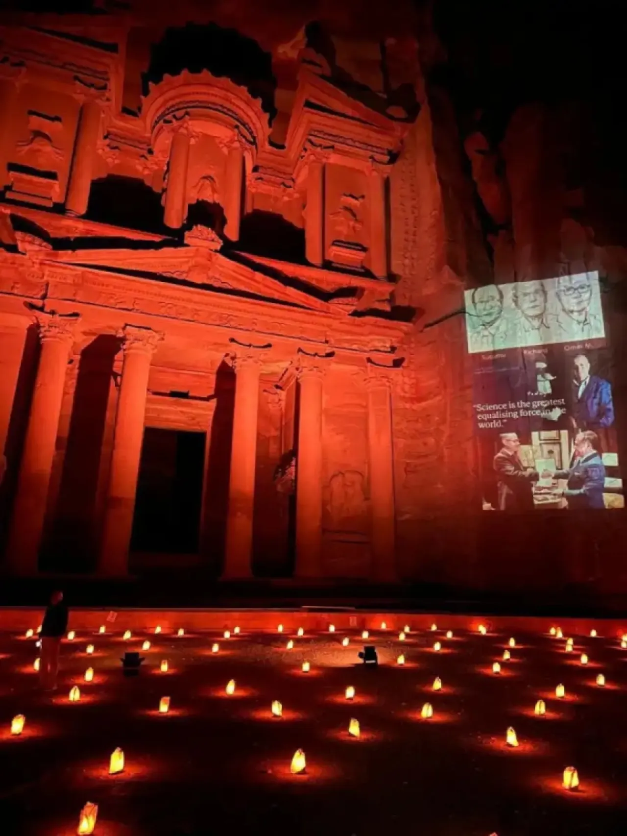 صورة الدكتور عمر ياغي على واجهة الخزنة في البترا