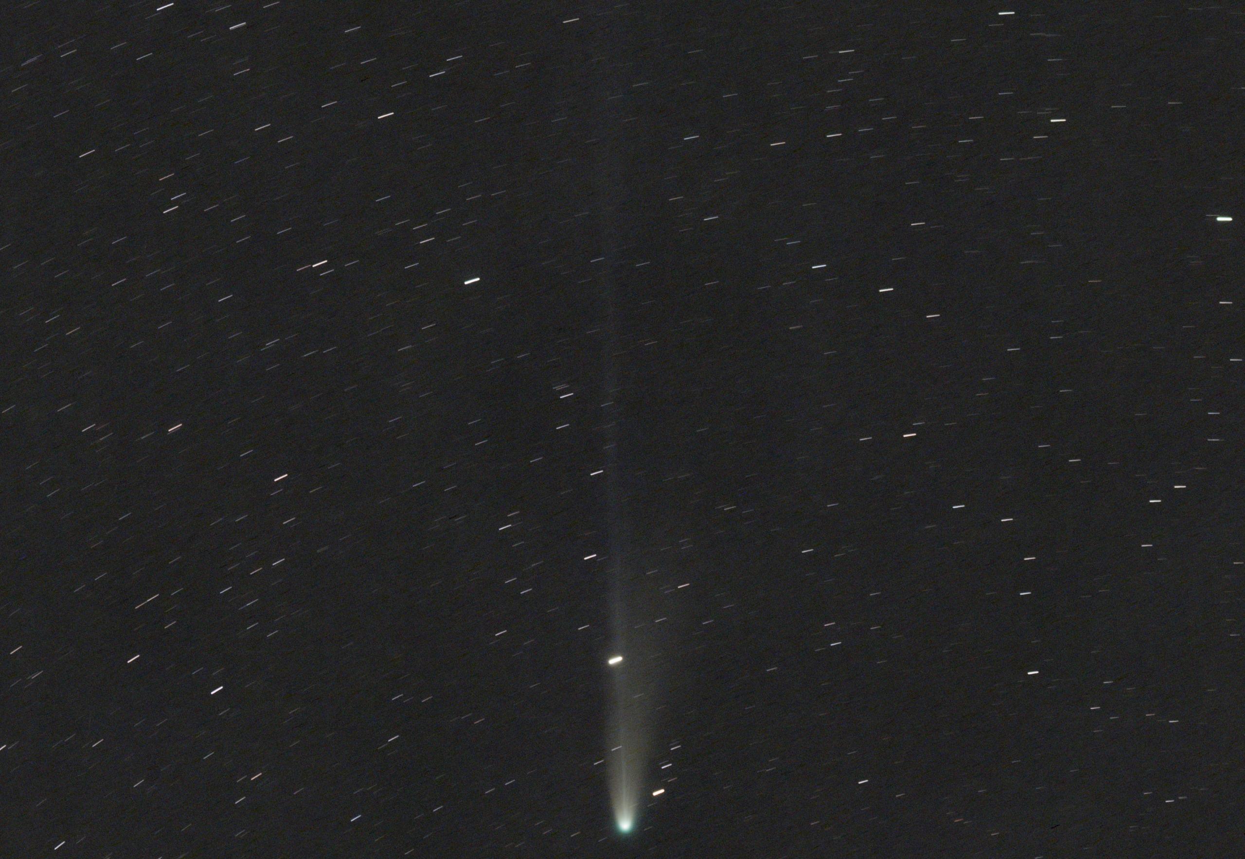 وعلى الرغم من طول ذيله القصير جداً، إلا أن المذنب ظهر بشكل واضح وبلون أخضر مميز.