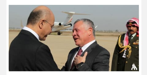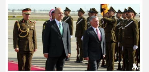 وأكد الرئيس العراقي تقدير بلاده الكبير لزيارة جلالة الملك إلى بغداد، والتي تعتبر في غاية الأهمية وتدل على عمق العلاقات بين البلدين والشعبين الشقيقين، كما أنها تشكل دعامة أساسية لفتح آفاق أوسع للتعاون بينهما.