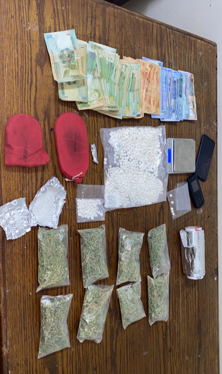فيما القي القبض على اربعة اشخاص وسط العاصمة بعد ان وردت معلومات حول قيامهم بترويج المواد المخدرة بواسطة احدى المركبات وضبط بحوزتهم كميات متفرقة من المواد المخدرة المعدة للبيع ، وفي جنوب عمان القي القبض على مروج استخدم مركبته لترويج المواد المخدرة وضبط داخل المركبة نصف كف من مادة الحشيش المخدرة وكمية من مادتي الماريجوانا والكريستال المخدرتين.