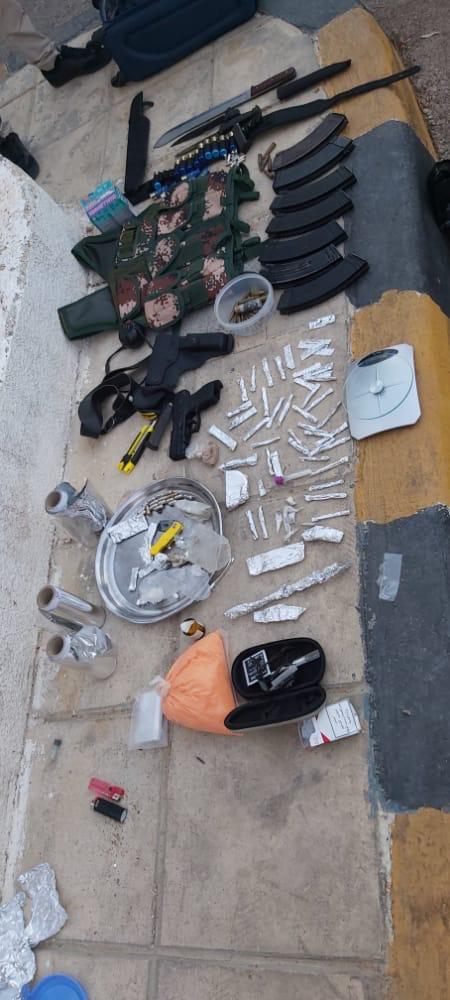 كما والقي القبض كذلك شرق العاصمة على شخص مطلوب ومصنف بالخطير جدا والمسلح بعد ان ابدى مقاومة شديدة وحاول الفرار وضبط بحوزته كمية من المواد المخدرة المعدة للبيع ، وفي شمال العاصمة جرت مداهمة منزل شخص مصنف بالخطير جدا بعد التاكد من وجوده داخله والقي القبض عليه وضبط بحوزته سلاح ناري وكيلو ونصف من مادة بودرة الحشيش الصناعي وكمية من مادتي الكريستال والحشيش المخدرتين.