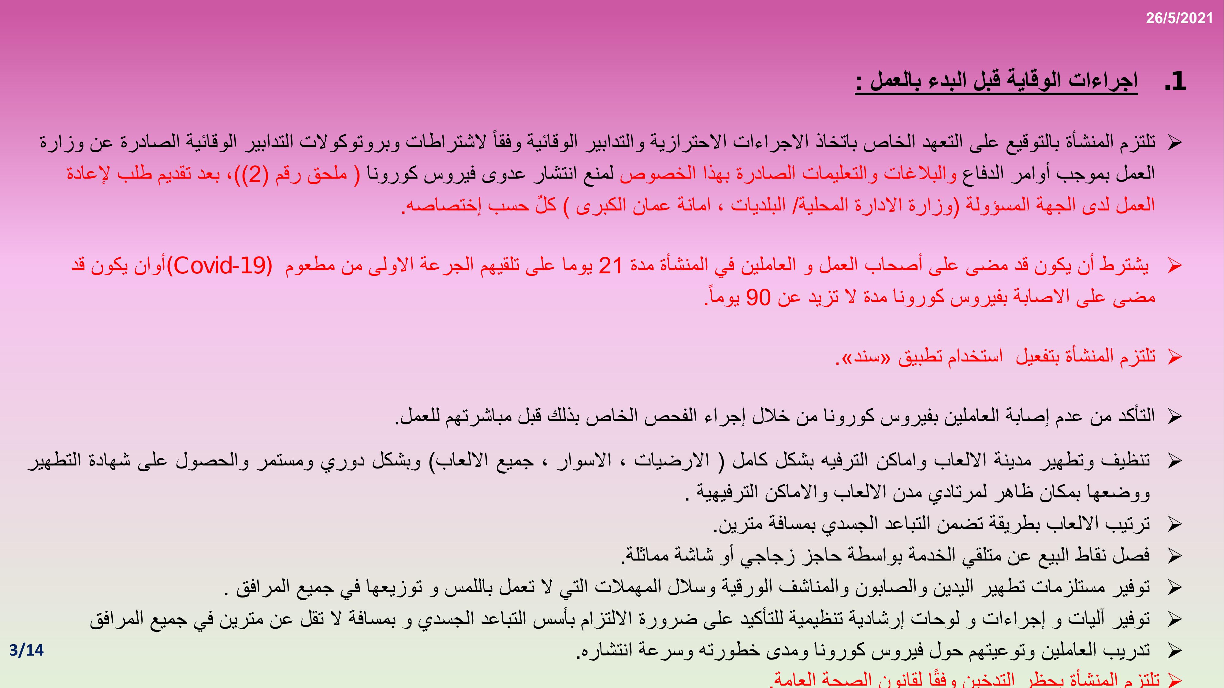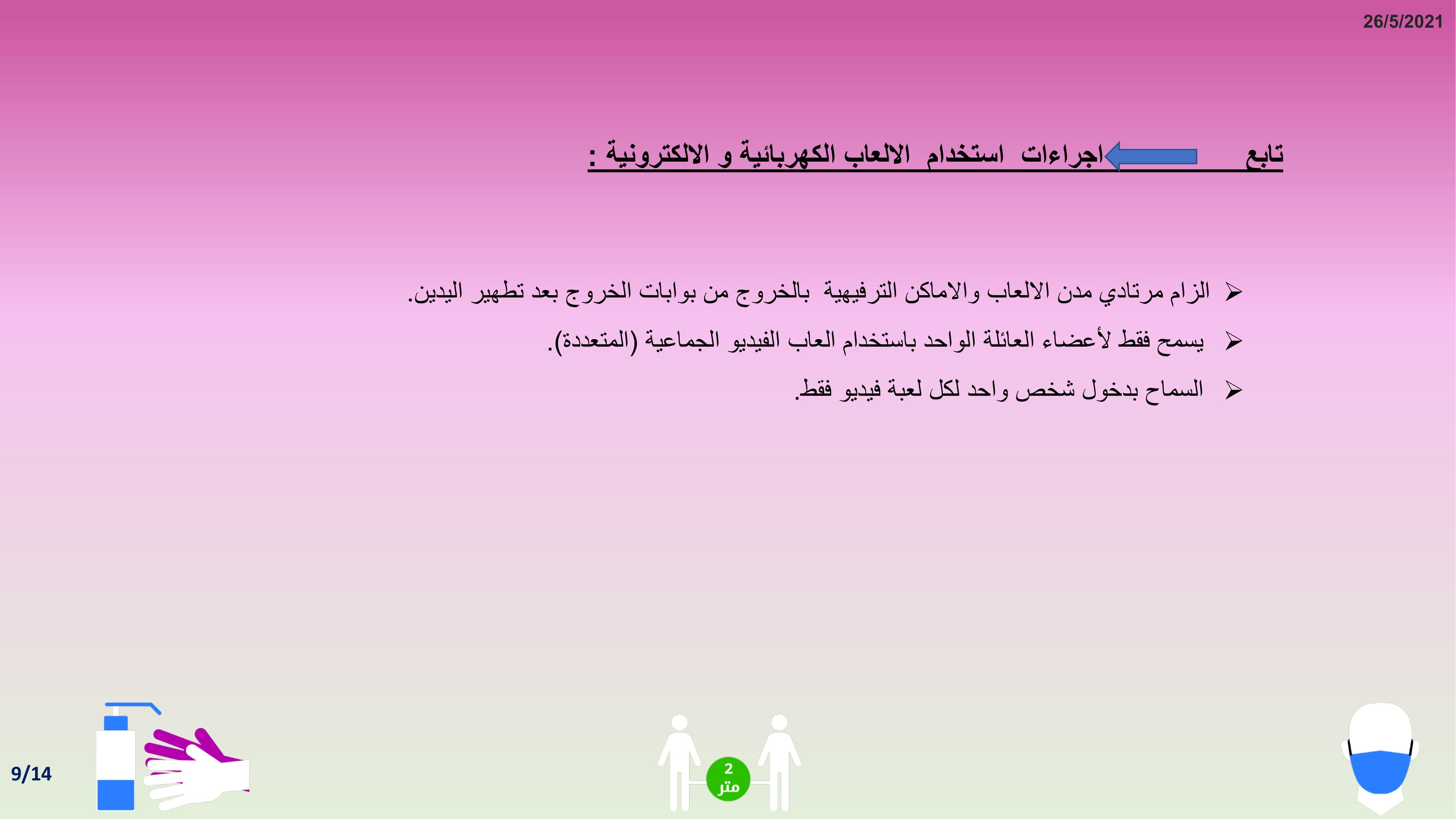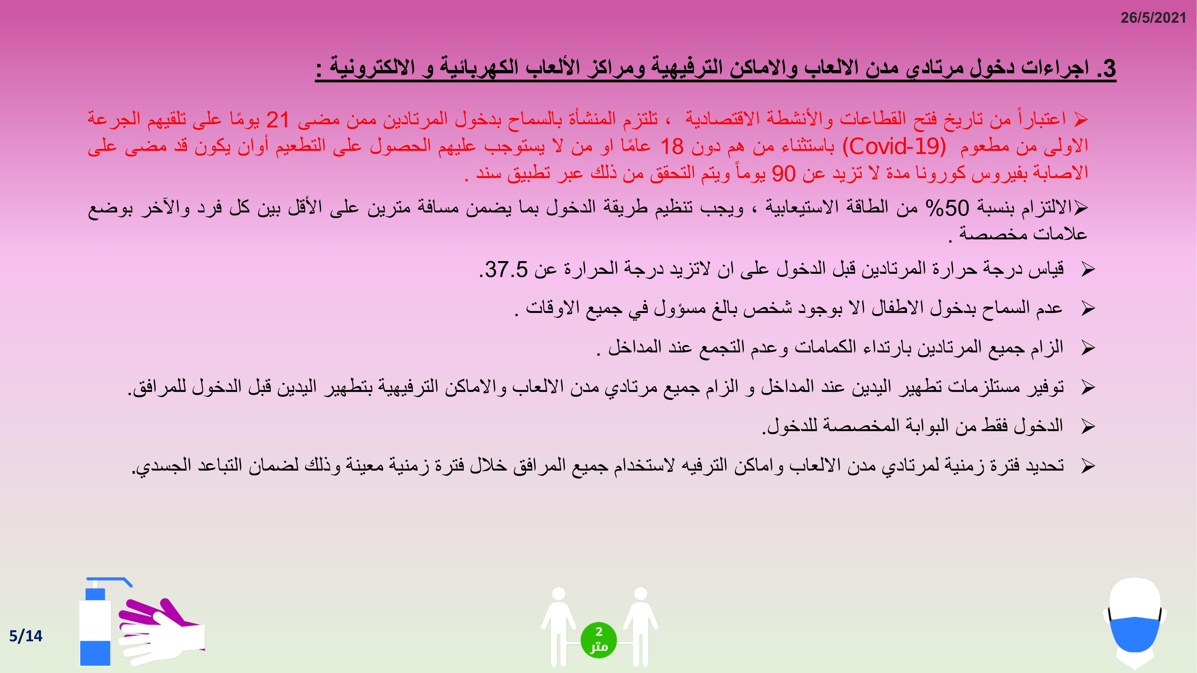 وكالة الناس – أعلنت الحكومة عن البروتوكول الصحي المعتمد في مدن الألعاب والأماكن الترفيهية ومراكز الألعاب الكهربائية والالكترونية، للسماح لها بالعودة للعمل وذلك اعتبارا من مطلع حزيران.