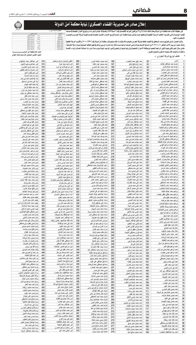 ووفقاً لإعلان منشور في صحيفة “الغد”، اليوم الخميس، يتوجب الحضور شخصياً للمعني، مصطحباً معه بطاقة الأحوال المدنية.