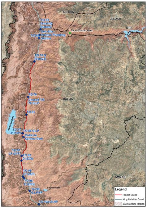 (مخطط نشره بنك الاستثمار الأوروبي لمشروع استبدال الجزء الجنوبي من قناة الملك عبدالله إلى قناة مغلقة)