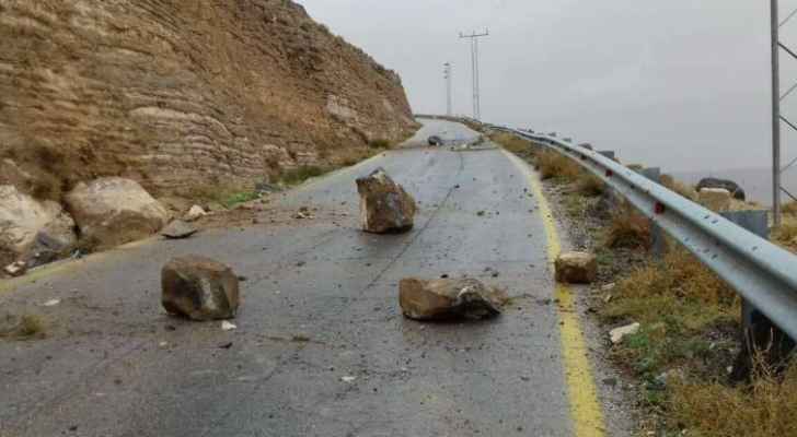 فتح طريق ذيبان – الموجب – الكرك بعد انهيارات صخرية