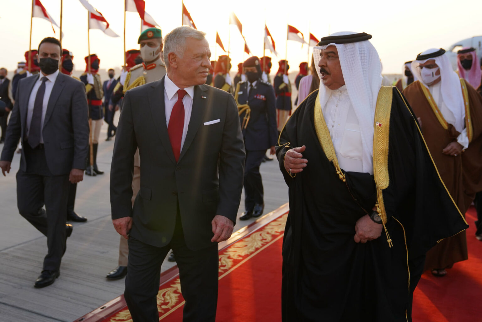 ولفت الزعيمان إلى أهمية التعاون بين البلدين في مكافحة فيروس “كورونا” والحد من انتشاره، إذ ثمن العاهل البحريني جهود الأردن في تسهيل إجراءات عودة المواطنين والطلبة البحرينيين إلى بلادهم خلال فترة الجائحة.