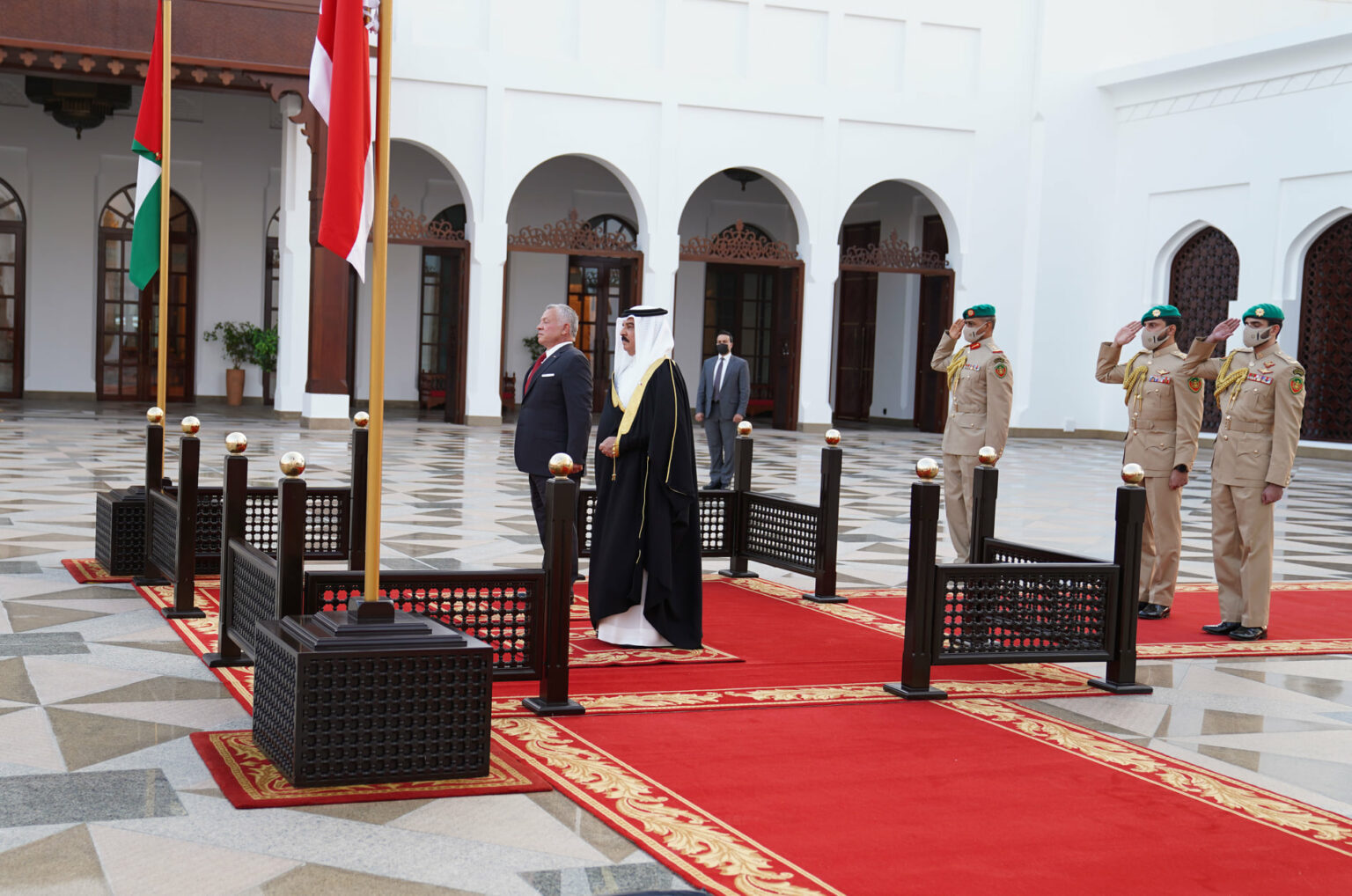من جانبه، أشاد العاهل البحريني بعمق العلاقات الثنائية الأخوية الوطيدة، وبالمستوى المتقدم من التعاون القائم، وبإسهامات الجالية الأردنية في مملكة البحرين في عملية التنمية والتطوير في المجالات كافة.