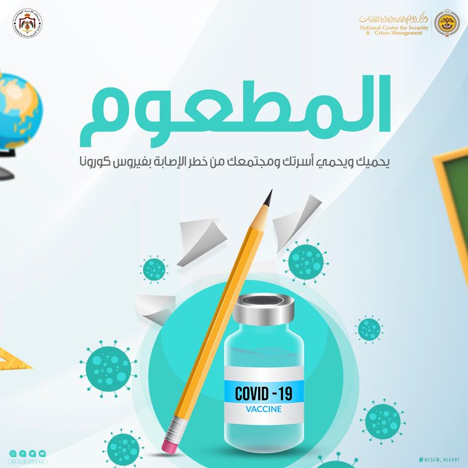 دعا المركز الوطني للأمن وإدارة الأزمات الطلبة، من عمر 12_18 إلى تلقي لقاح كورونا من أجل حماية أنفسهم .