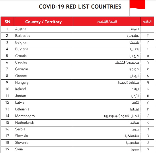 وكالة الناس – أصدرت وزارةُ الصحّة القطرية اليوم الاثنين، تحديثًا جديدا لقائمة السفر والعودة أعادت فيه على الأردن ضمن قائمة الدول الحمراء فيما يتعلق بالحجر الصحي، وإجراءات الفحص للكشف على فيروس كورونا.