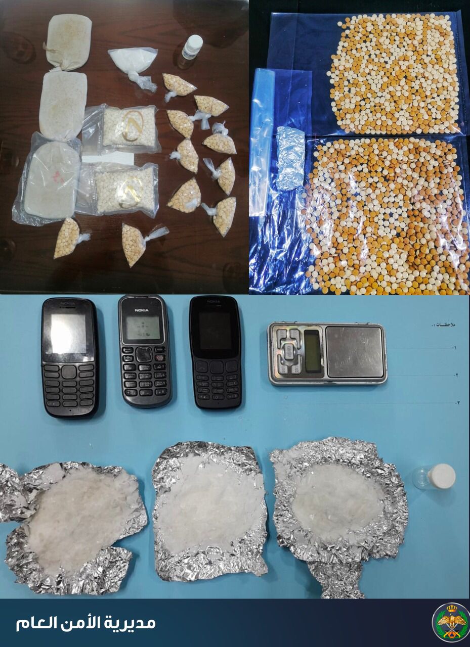 ففي القضية الاولى أُلقي القبض في محافظة إربد على أحد الأشخاص بعد متابعة معلومات وردت حول قيامه بإخفاء كمية من المواد المخدرة لغايات الترويج وضُبط بحوزته 1 كغم من مادة الكريستال المخدرة ونصف كيلو من بودرة الحشيش الصناعي المخدر.