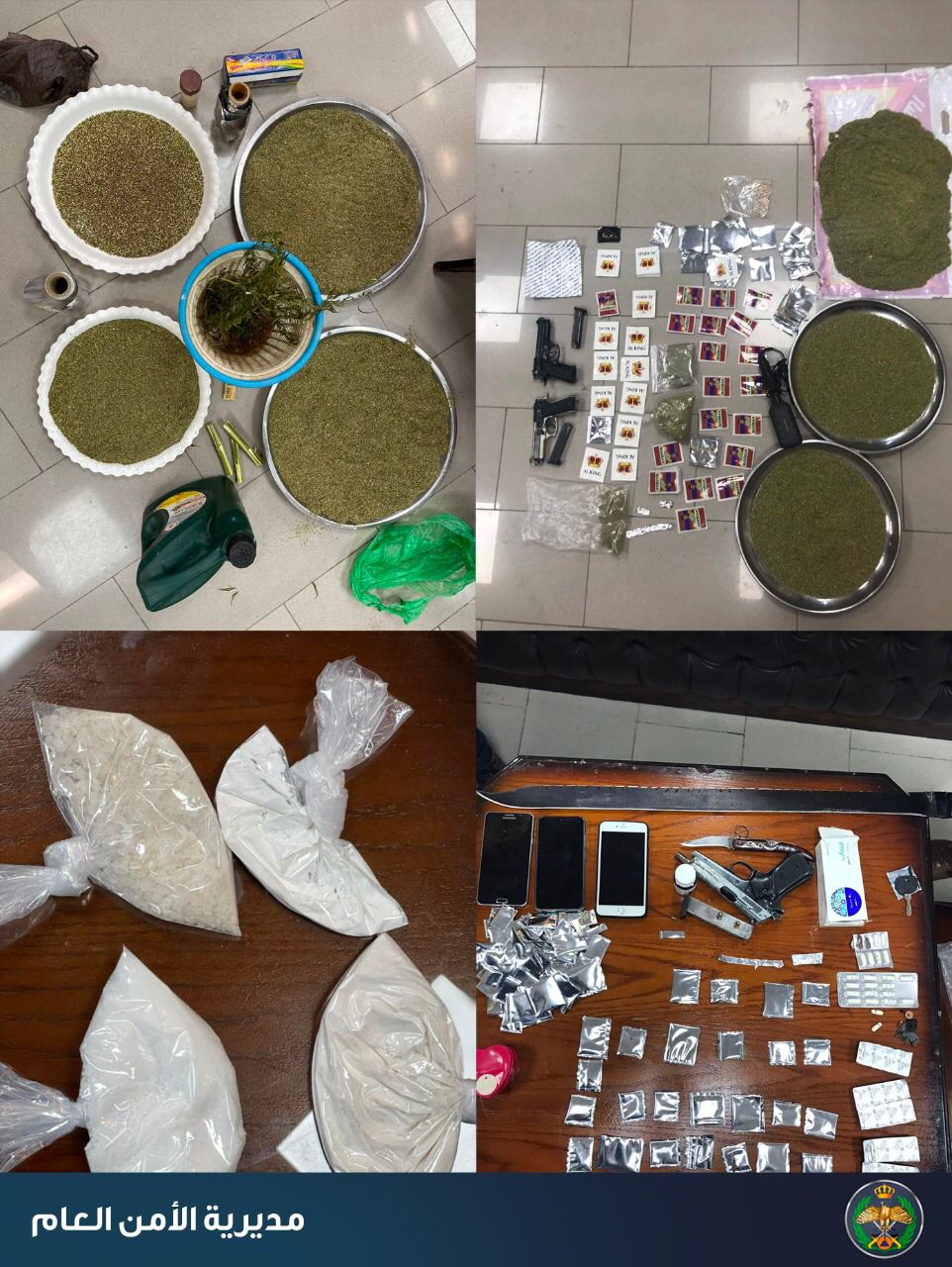 وكالة الناس – قال الناطق الإعلامي باسم مديرية الأمن العام إن العاملين في ادارة مكافحة المخدرات وفي إطار حملاتهم المستمرة على مروجي وتجار المواد المخدرة فقد تعاملوا خلال الأيام القليلة الماضية مع عدد من القضايا النوعية في مختلف مناطق المملكة والتي أُلقي القبض خلالها على مروجين وتجار للمواد المخدرد وضُبطت بحوزتهم كميات متفرقة من المواد المخدرة.
