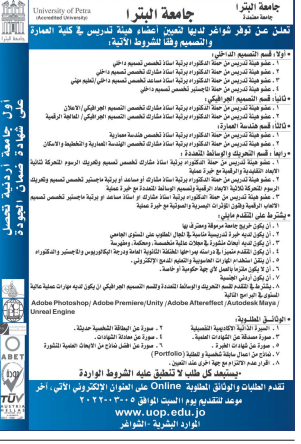 وظائف شاغرة لدى جامعة البترا