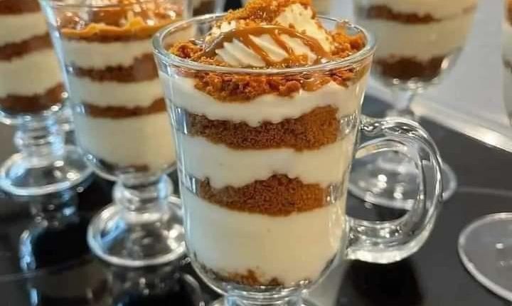 وكالة الناس – المكونات: 5 كوب حليب 1 كوب سكر 2 ملاعق طعام دقيق 2 ملاعق طعام نشا 1 صفار بيضة 1 عبوة قشطة (200مل) 1علبة بسكويت لوتس للوجه 200 مل كريمة 1 ملعقة كبيرة من كريمة اللوتس نضع جميع المكونات ماعدا الكريمة في القدر واخلطيها على النار . نرفع القدر من النار ويُضاف كيس واحد من الكريمة ونخفق. نطحن علبة بسكويت اللوتس جيدًا الخلاط. نضع في قاع الكأس طبقة من البسكويت المطحون. نسكب فوق البسكويت المطحون المهلبية ثم طبقة من البسكويت المطحون ثم نسكب مرة أخرى الملهبية ثم طبقة من البسكويت المطحون ثم آخر طبقة من الكريمة ثم نزينها بكريمة اللوتس وتقدم بالصحة والراحة.