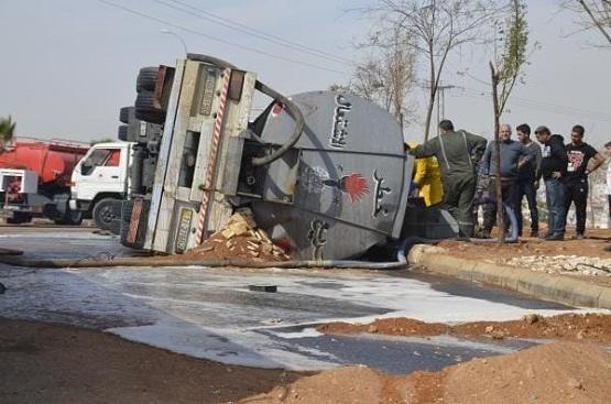 إصابة بليغة نتيجة تدهور صهريج نفط على طريق شويعر